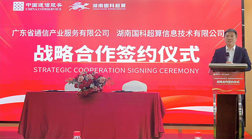 国科超算总经理田宝华介绍了国科超算是以研发高性能计算产品与数字算力基础平台构建为核心业务的创新型技术企业。公司技术团队核心专家来自国防科大“天河”超算系统研制团队。团队依托于在计算机系统结构、高性能计算机系统领域的长期技术积累,掌握多项高性能计算和特种装备计算领域的核心技术,具备行业领先的科研能力。公司面向特种装备、高性能计算、云计算、大数据、人工智能、工业控制及物联网等应用领域,致力于成为国内领先、国际一流的高性能计算产品研发、数字算力系统构建与数字化应用整体解决方案的综合服务商。此次与广东通服的战略合作,不仅仅是两家企业的携手共进,更是理念的共鸣、优势的互补以及战略目标的高度契合。旨在通过深化合作,共享资源、共创价值,共同提升核心竞争力,以更多合作成果为数字经济社会发展贡献力量。